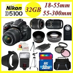 you're want to buy Nikon D5100 Digital SLR Camera with Nikon 18-55mm f/3.5-5.6G VR AF-S DX Nikkor Lens and Nikon AF-S NIKKOR 55-300mm f/4.5-5.6G ED VR Zoom Lens + 3 Extra Lens + 32GB SDHC Memory Card & More !!,yes ..! you comes at the right place. you can get special discount for Nikon D5100 Digital SLR Camera with Nikon 18-55mm f/3.5-5.6G VR AF-S DX Nikkor Lens and Nikon AF-S NIKKOR 55-300mm f/4.5-5.6G ED VR Zoom Lens + 3 Extra Lens + 32GB SDHC Memory Card & More !!.You can choose to buy a product and Nikon D5100 Digital SLR Camera with Nikon 18-55mm f/3.5-5.6G VR AF-S DX Nikkor Lens and Nikon AF-S NIKKOR 55-300mm f/4.5-5.6G ED VR Zoom Lens + 3 Extra Lens + 32GB SDHC Memory Card & More !! at the Best Price Online with Secure Transaction Here...